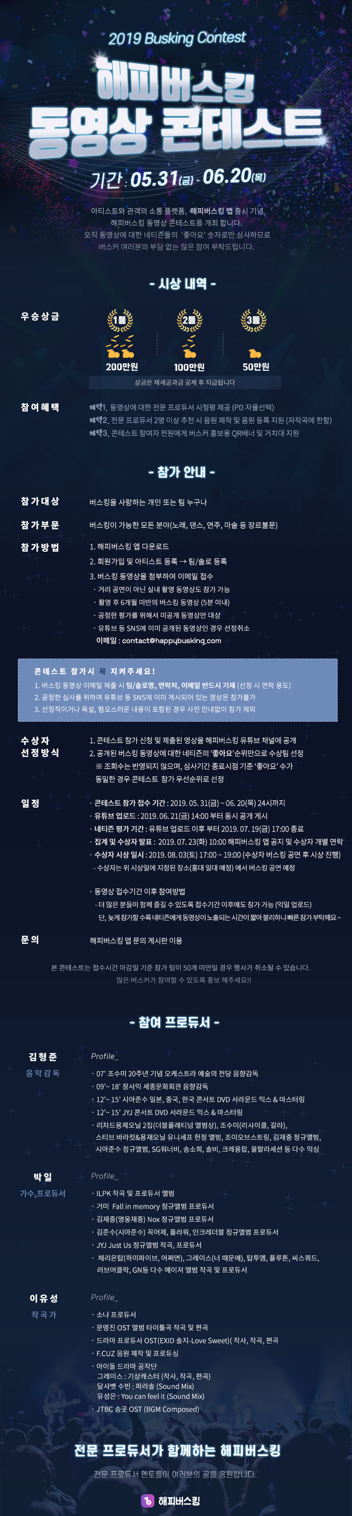 문의 : 카카오채널 : 해피버스킹 (평일 10:00~17:00, 주말·공휴일 휴무) | Mail. contact@happybusking.com