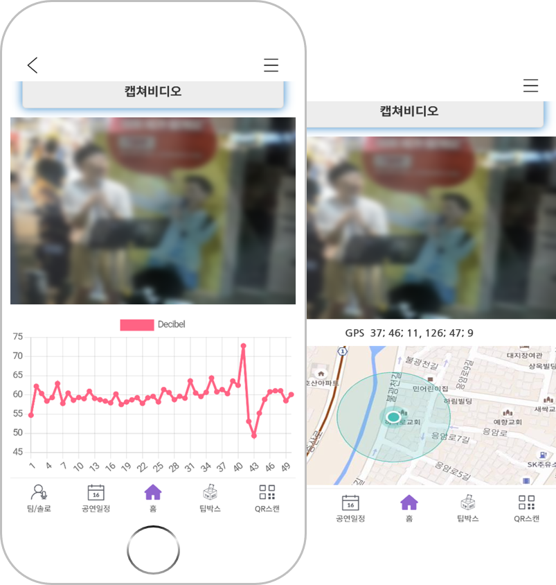 공연 소음을 측정할 수 있는 기능 및 QR스캔, 촬영 시 GPS 기능 등을 이용해 공연 소음 발생, 승인된 공연장소 외 공연 등 공연 민원예방 관리로 다양한 문화공연 사업에 건전한 공연문화를 만들 수 있습니다.