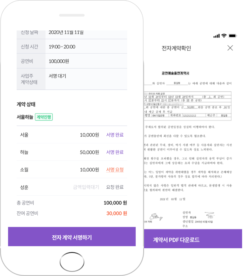 해피버스킹 플랫폼의 쉽고 간편한 문화예술용역 전자계약과 해피버스킹과 연계된 근로복지공단 인가 보험사무대행기관을 통해 예술인 고용보험 취득 지원도 받아 보실 수 있어요.