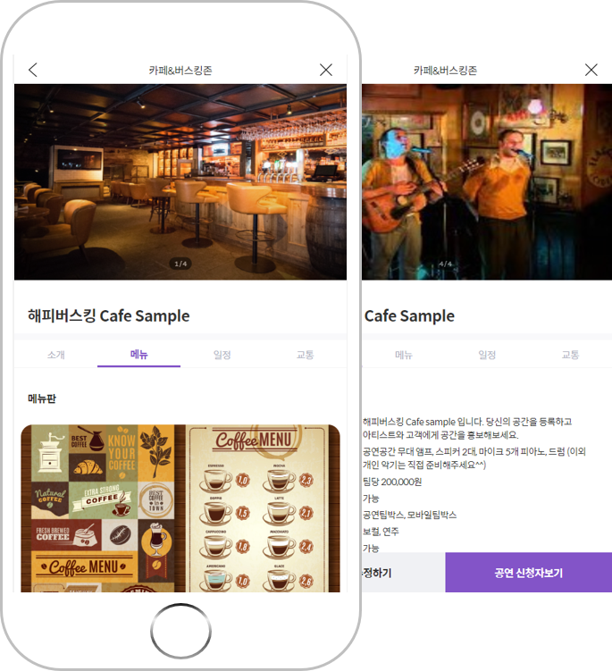 공연이 있는 카페 등 상업공간을 아티스트와 관객에게 홍보할 수 있습니다.