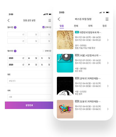 공연요청 위한 맞춤검색 서비스를 지원합니다.
