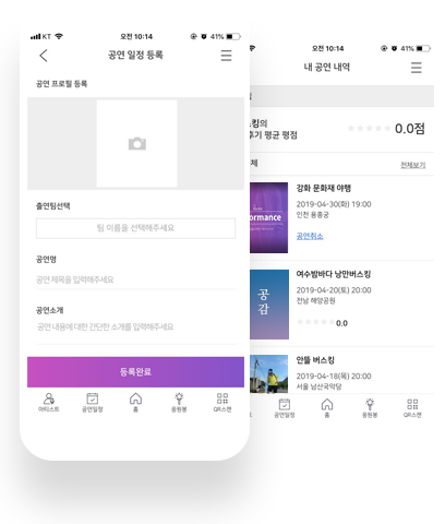 공연을 예정중인 아티스트가 직접 일정을 등록하는 메뉴입니다.