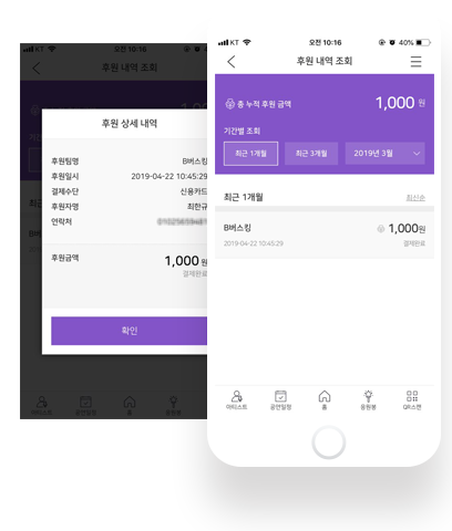 모바일 팁 박스를 통해 후원된 내역을 조회할 수 있는 메뉴 입니다.