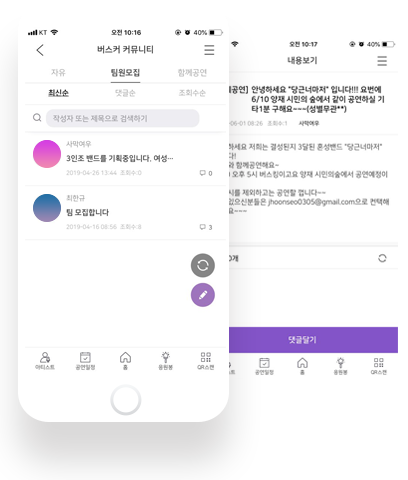 * 함께공연 게시판 : 팀 또는 솔로 아티스트들이 연합하여 공연을 하고자 할 때 정보를 공유하는 게시판 입니다.
