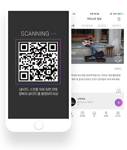 공연중인 아티스트 앞에 QR모바일팁박스가 보인다면 별도 앱 설치 없이 QR코드 스캔만으로 다양한 기능과 콘텐츠를 확인 할 수 있습니다.