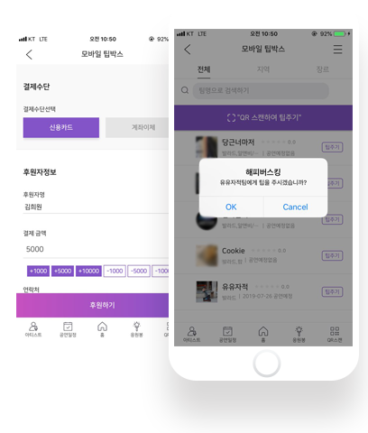 3. 모바일 간편결제를 이용한 공연 팁 후원