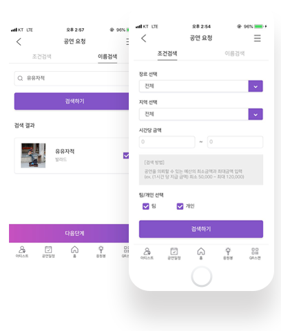 공연비 등 상황에 맞는 조건을 설정하고 원하는 아티스트를 만나 보세요.